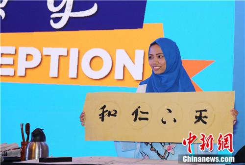 图为阿拉扎大学孔子学院印尼学生表演书法和茶道。闻喜 摄