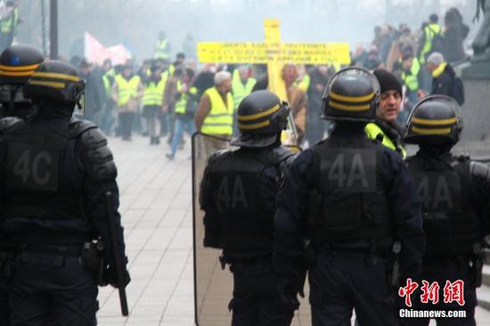 当地时间1月5日,法国2019年首轮示威登场,巴黎数以千计民众再次走上街头,在市中心游行抗议。防暴警察在市中心国民议会大厦附近与示威者对峙。中新社记者 李洋 摄
