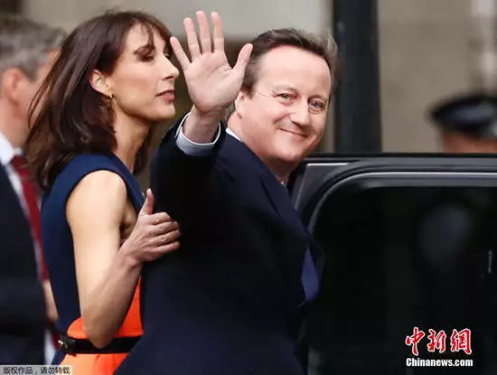 资料图:2016年7月13日,英国伦敦,时任英国首相卡梅伦与夫人及三个孩子一同告别唐宁街十号。