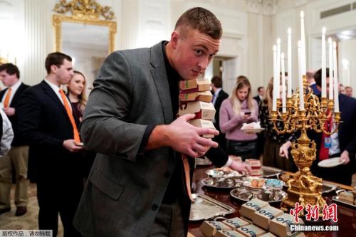 政府停摆致白宫无法宴客,总统叫外卖招待冠军球队。当地时间2018年1月14日,美国克莱姆森大学老虎队获得NCAA大学橄榄球联赛全国总决赛冠军后,特朗普在白宫设宴举办表彰会。