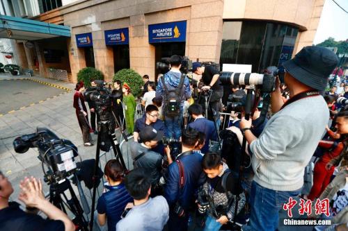当地时间2月27日,第二次朝美首脑会晤即将举行,大批媒体记者在会晤地点外聚集。中新社记者 富田 摄