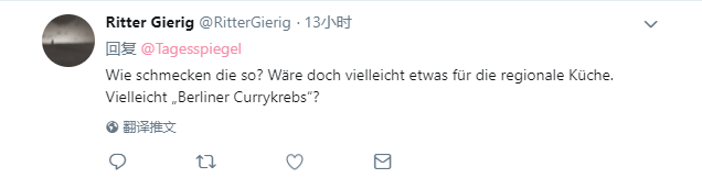 德国网友对小龙虾的口味表示好奇,同时称或许可以做成当地特色美食,比如“柏林咖喱小龙虾”(推特截图)