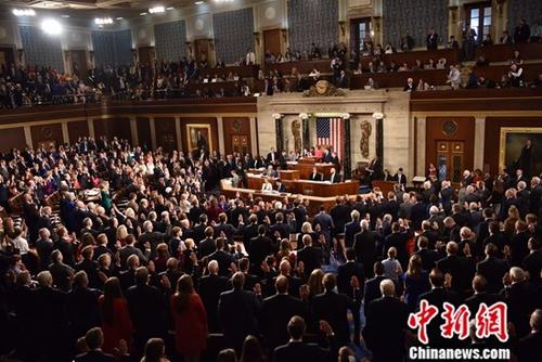 资料图:当地时间2019年1月3日,美国众议院当选议员集体宣誓就职。中新社记者 沙晗汀 摄