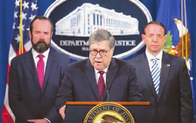 ■ 美国司法部长巴尔(中)就『通俄门』报告公布举行新闻发布会 图 IC