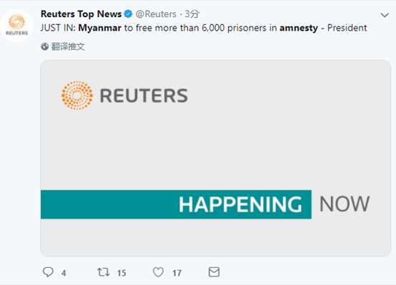 海外网5月7日电据路透社7日报道,缅甸总统温敏表示,将大赦6000多名犯人。