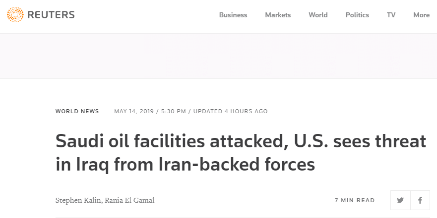 12日,阿联酋突然发表措辞严厉声明称,有4艘商船在该国水域遭“蓄意破坏”。随后,沙特阿拉伯出面“认领”其中两艘为本国油轮。