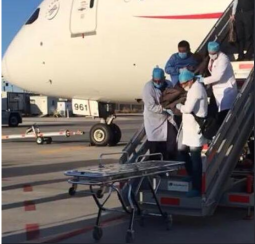 医生将这名男子的尸体从飞机上抬下来,图源:推特