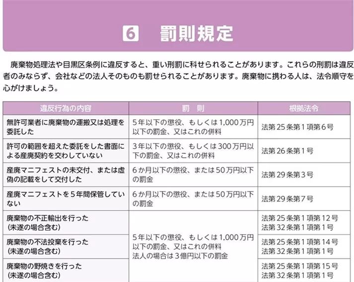 如果企业乱丢弃废弃物者,那么将重罚最高至3亿日元(约合人民币1800多万元),同时涉案人也要处以5年以下监禁。