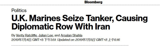 英国扣押油轮,伊朗随即交涉抗议。彭博社4日认为,英国、法国与德国正试图阻止伊朗放弃防止其发展核武器的国际协议,而此次外交争端加剧了双方的紧张关系。