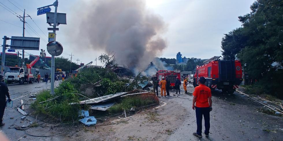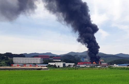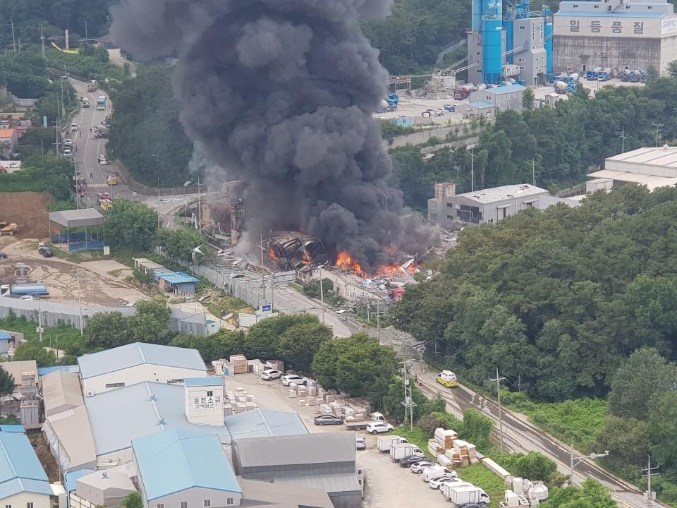 6日下午,韩国京畿道一家纸箱厂爆炸起火。