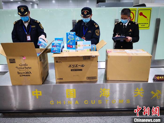 福州首批捐赠物资在福州长乐机场顺利通关。 福州海关供图 摄