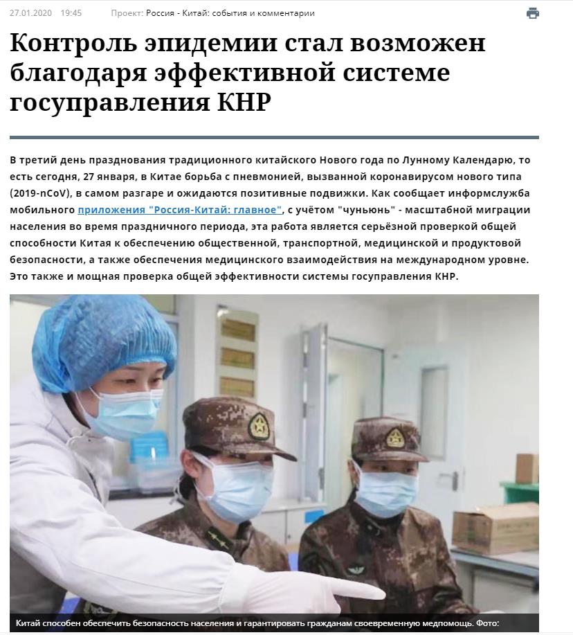 俄罗斯政府机关报《俄罗斯报》近日连续转发中央广播电视总台中俄头条有关疫情防治的相关报道。27日,《俄罗斯报》官网转载发布有关李克强总理赴武汉抗疫一线的报道。报道称,受习近平总书记委托,中国总理李克强赴武汉考察指导疫情防控工作,慰问疫情防控一线的医务人员,极大提振了中国人民共克时艰的信心。同日,《俄罗斯报》官网在转发总台《国际锐评》相关报道时指出,中国的疫情防控正实现从决策到执行的无缝衔接,用灵活高效和精准施策,铺设一张渗透到社区和农村的疫情防控网络,最大限度保障人民群众生命安全与身体健康。
