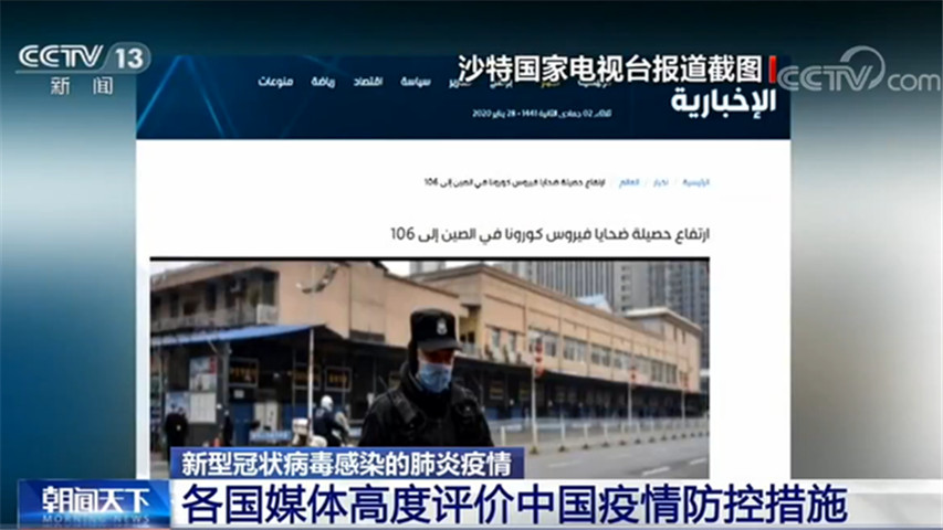 沙特国家电视台和国家通讯社等官方媒体均引用中央广播电视总台的报道,向本国观众介绍新型冠状病毒感染的肺炎疫情的相关情况,以及中国在防控疫情中采取的措施。沙特最大的阿拉伯语报纸《利雅得报》在报道中着重引述了中国在防控方面作出的努力,称在中国国家主席习近平的领导下,中国已采取措施防止疫情蔓延,并强调中国将指定医院的专家等资源集中用于治疗重症患者,不会因为费用等原因推迟治疗,并将保障湖北省省会武汉的物资供应。