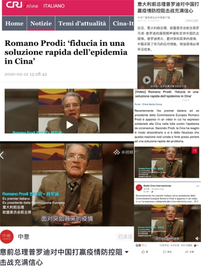 12日,意大利前总理、欧盟委员会前主席普罗迪通过总台发来视频表示,面对突来的疫情,中国采取了非凡的应对措施,全国人民万众一心,一定可以取得最后的胜利。普罗迪特别强调,世界各国息息相关,理应团结一致支持中国。