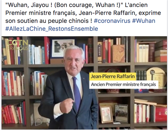 法国前总理拉法兰表示,坚信中国人民一定能打赢这场战“疫”