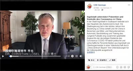 德国因戈尔施塔特市市长吕泽尔为中国祝福加油