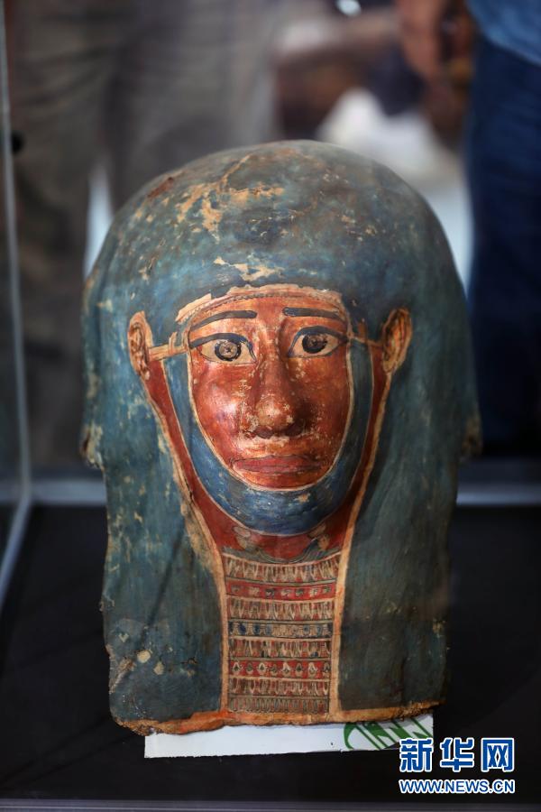 这是11月14日在埃及吉萨的彩绘木棺发现现场拍摄的文物。埃及旅游和文物部长哈立德·阿纳尼14日宣布,在吉萨省塞加拉地区出土100具距今约2500年的彩绘木棺,这是埃及本年度最大的考古发现。新华社发(艾哈迈德·戈马摄)