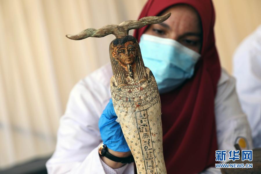11月14日,在埃及吉萨,一名考古工作人员在彩绘木棺发现现场工作。埃及旅游和文物部长哈立德·阿纳尼14日宣布,在吉萨省塞加拉地区出土100具距今约2500年的彩绘木棺,这是埃及本年度最大的考古发现。新华社发(艾哈迈德·戈马摄)