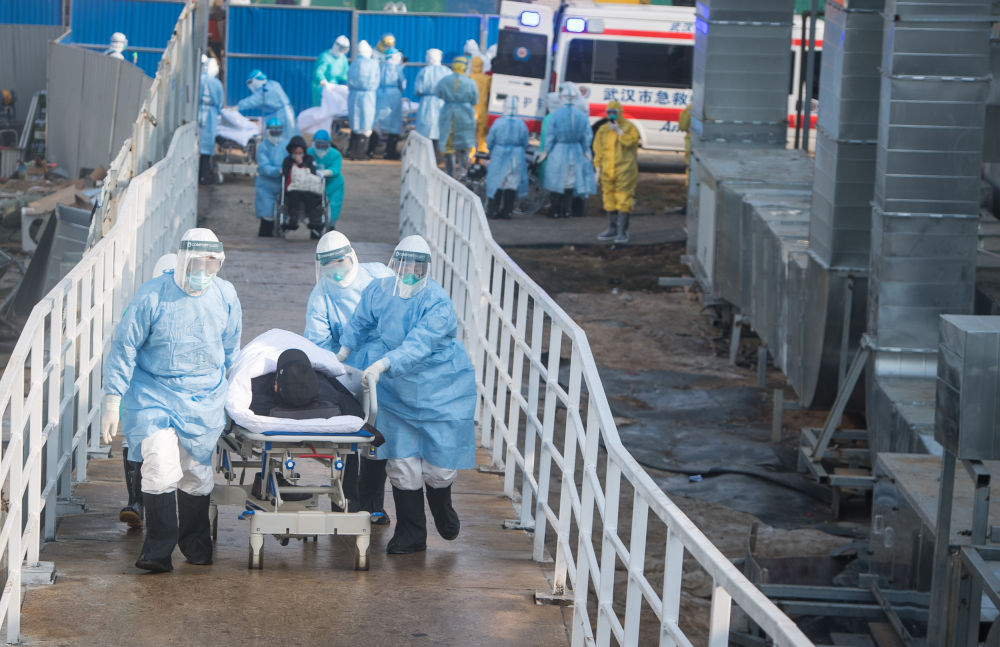2月4日,医护人员将患者转运至武汉火神山医院病房。新华社记者 肖艺九 摄