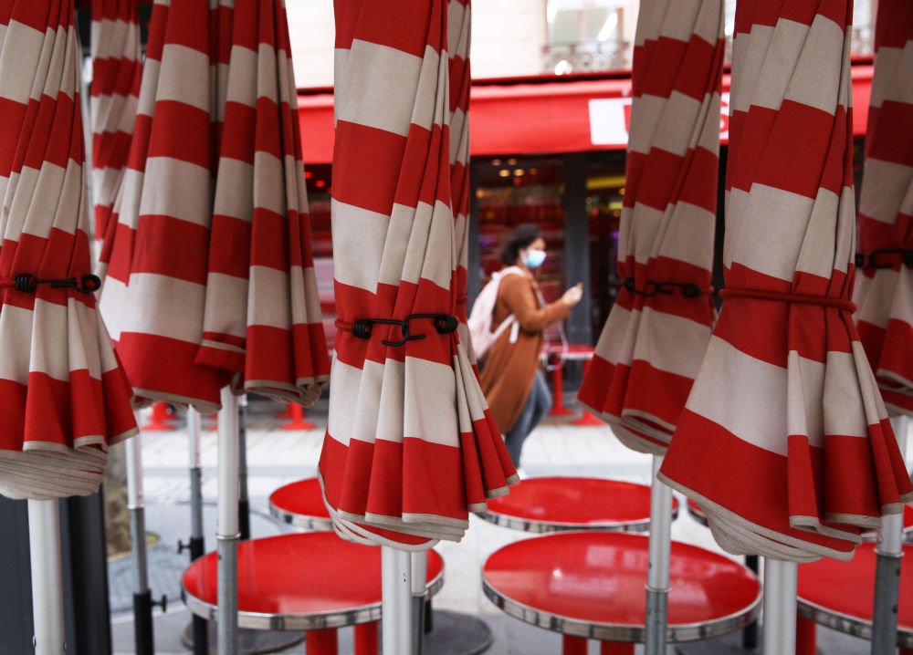 10月30日,法国巴黎香榭丽舍大街上的一家餐厅关门歇业。当天开始,法国再度全国“封城”,至少持续至12月1日。新华社记者 高静 摄