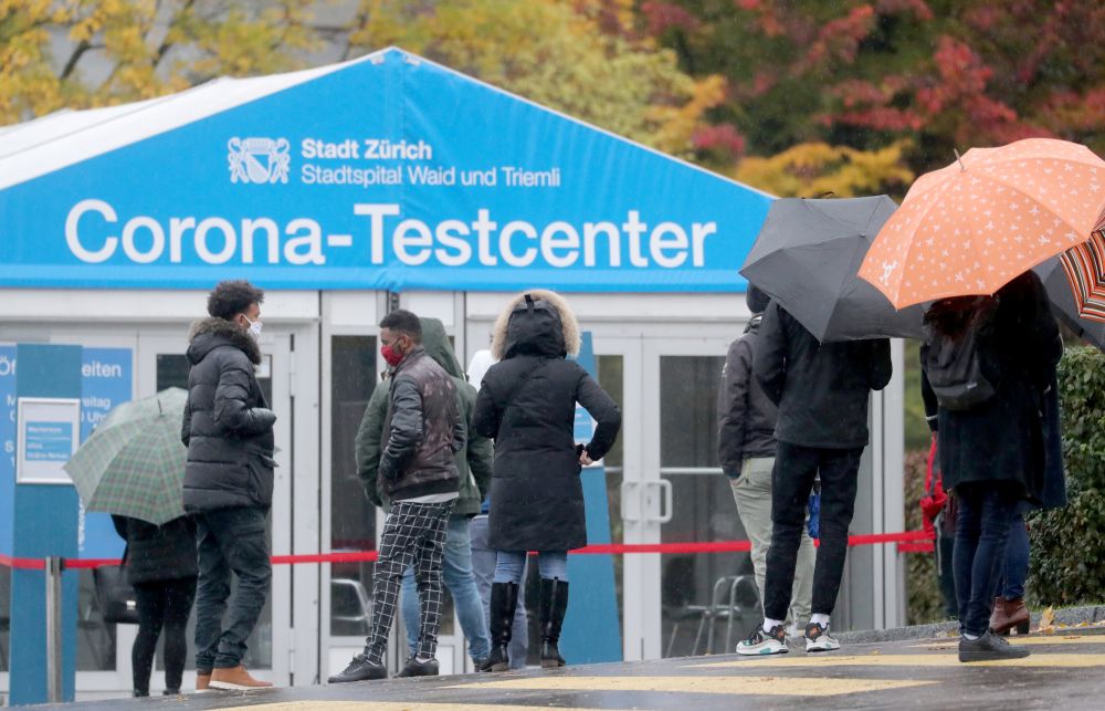 10月23日,人们在瑞士苏黎世排队接受新冠病毒检测。新华社/路透
