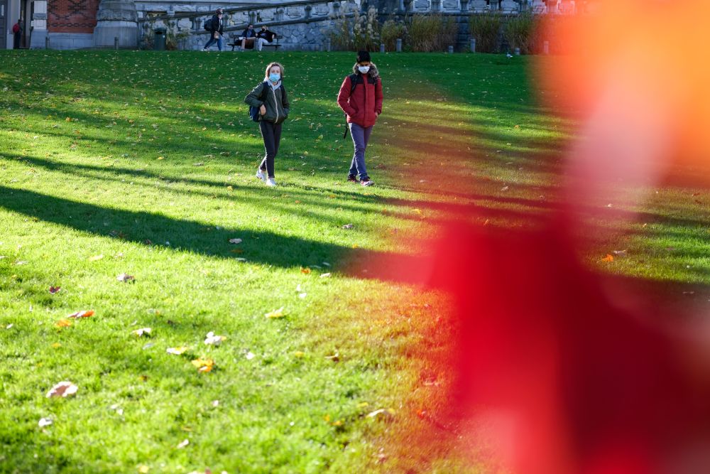 11月18日,在比利时布鲁塞尔,人们在公园散步。新华社记者 张铖 摄