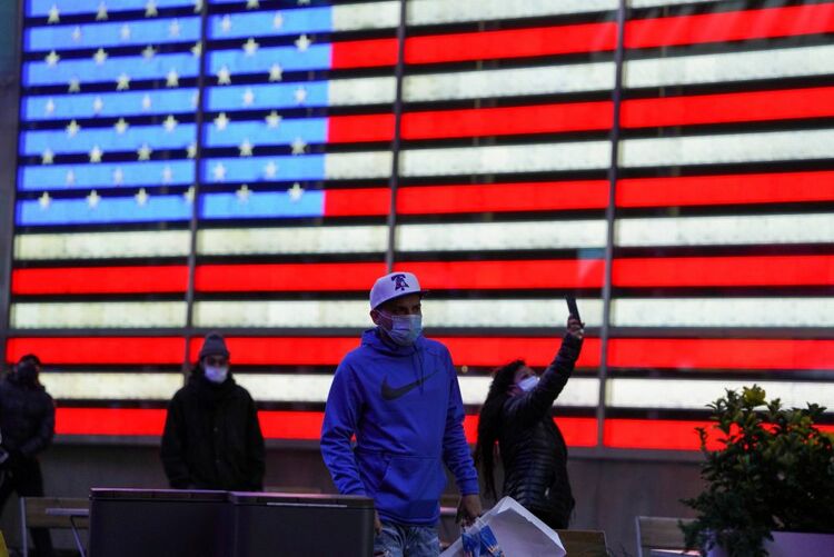 11月18日,行人走在美国纽约时报广场。(新华社记者王迎摄)