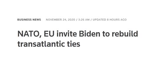 报道最后提到,对欧盟来说,美国的“语气转变”是可喜的。欧盟经常与美国现任总统特朗普发生争执,后者曾赞扬英国“脱欧”,让美国退出全球气候协定,并公开敌视北约(NATO),抨击其欧洲盟友防务支出太少。
