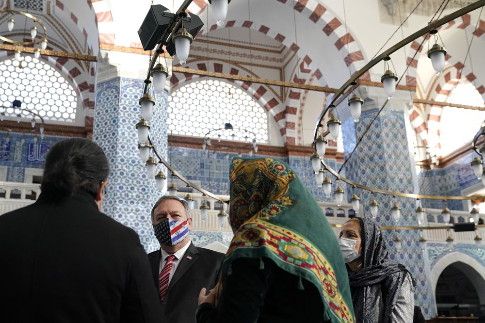 再看土耳其。早在今年7月,土耳其总统埃尔多安签署总统令,将圣索菲亚博物馆改回清真寺,此举曾遭到蓬佩奥的公开反对和批评。而本次在与土耳其东正教领袖见面时,蓬佩奥表达出他对“宗教自由的坚定立场”并讨论到土耳其的宗教问题。对于这样的行程安排,土外交部发表声明予以谴责,反唇相讥。声明强调,该行程安排是“极端不合适的”,建议美国“先照照镜子”,对于自己国家违反人权的行为,比如种族主义、伊斯兰恐惧症、仇恨犯罪等等,也应该保持“必要的敏感”。