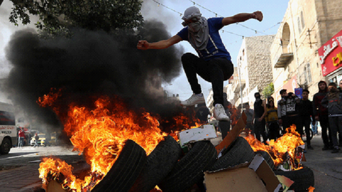 △巴勒斯坦民众在希伯伦抗议蓬佩奥的到访 图片来源:网络