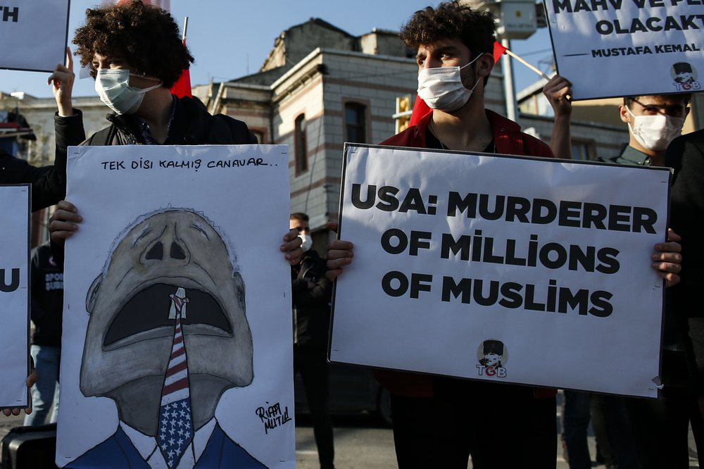 此外,土耳其数十位民众在伊斯坦布尔举行示威活动,抗议蓬佩奥的本次访问,甚至高喊“打倒美帝国主义”、“美国佬回家去”等口号。