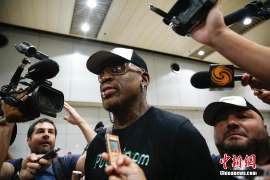 资料图:2017年6月17日,前NBA球星罗德曼抵达北京首都国际机场。当日,前NBA球星罗德曼结束其第五次访朝之旅,由平壤飞抵北京。中新社记者 王骏 摄