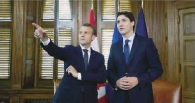 马克龙7日在加拿大首都渥太华会晤加总理特鲁多,一起召开记者会。