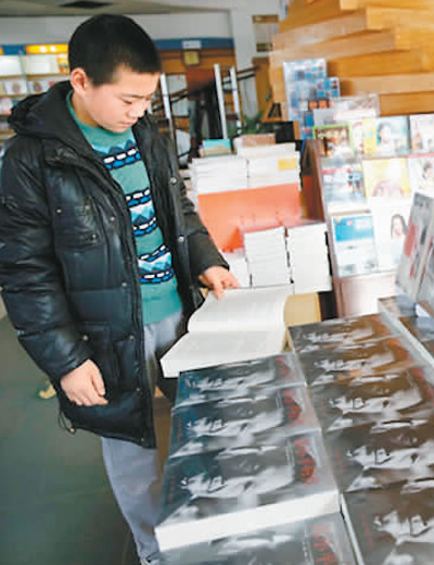 北京小学生褚焱在三联书店翻看《邓小平时代》。