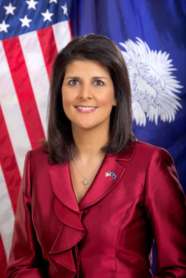 妮基·黑利(Nikki Haley),1972年1月20日出生于美国南卡罗来纳州。毕业于克莱姆森大学,美国籍印度锡克裔政治家,历任南卡罗来纳州众议员和南卡罗来纳州州长。 2017年,由总统唐纳德·特朗普提名,经国会审议通过后,妮基·黑利担任第29任美利坚合众国常驻联合国代表。