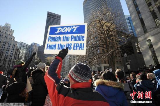 当地时间1月12日,美国联邦政府部分关门进入第22天,打破了美国政府关门时间最长的纪录。图为当地时间1月11日,美国环保局雇员在波士顿街头集会呼吁结束政府关门状态。