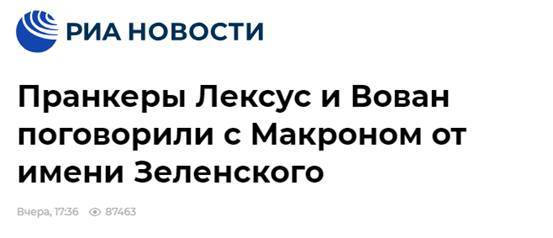 按照俄新社的描述,当天,库兹涅佐夫和斯托利亚罗夫,拨打了法国巴黎爱丽舍宫总统府官网上的电话,马克龙的助理接听后,一人说自己是泽连斯基,随后电话被转接给马克龙。