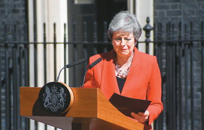 当地时间5月24日,英国首相特雷莎·梅宣布,将于6月7日卸任英国保守党领袖职务,并待新的领导人就位后,辞去英国首相一职。