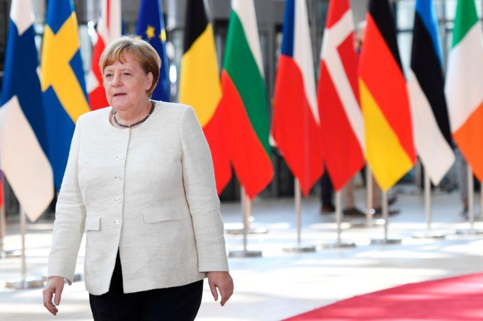 7月2日,在比利时布鲁塞尔,德国总理默克尔准备出席欧盟峰会。新华社/法新