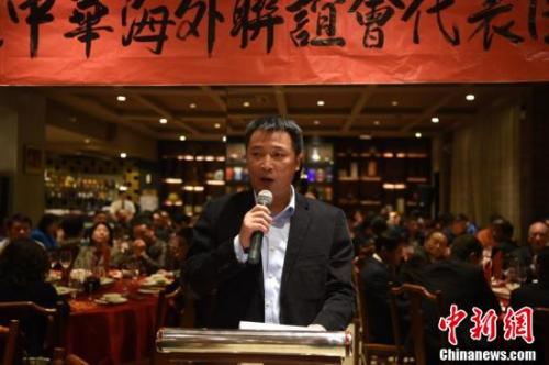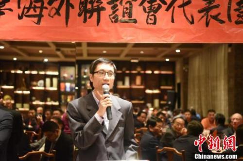 巴西华人协会监事长刘皓致辞。(中新社记者 莫成雄 摄)