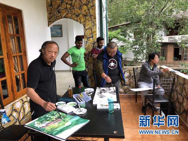宁夏画家在斯里兰卡进行户外写生。新华网发(图为斯里兰卡中国文化中心提供)