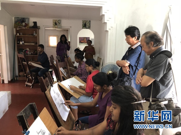 宁夏艺术家在斯里兰卡美术学院观摩教学。新华网发(图为斯里兰卡中国文化中心提供)