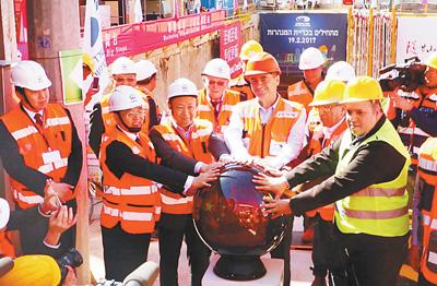 由中铁工程装备集团自主研制和制造的盾构机在以色列特拉维夫轻轨建设中发挥巨大作用。图为第一台盾构机“果尔达”号始发仪式现场。中铁隧道局集团有限公司供图