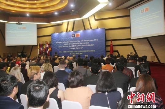 中国—东盟建立战略伙伴关系15周年纪念招待会暨“和谐共处”图片展7月12日在位于印尼首都雅加达的东盟秘书处举办,中国驻东盟大使黄溪连说中方愿同东盟方一道,推动中国—东盟关系行稳致远,携手迈入提质升级的新时代。 林永传 摄