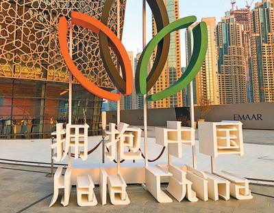 习近平主席即将对阿联酋进行国事访问前夕,为响应“一带一路”倡议,阿联酋迪拜日前推出涵盖贸易、投资、文化、旅游等领域的“拥抱中国”计划。图为迪拜歌剧院主入口处竖立的“拥抱中国”标志。本报记者 曲翔宇摄