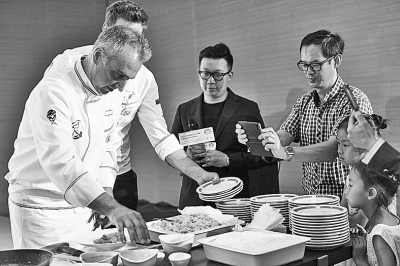 6月25日,意大利厨师在罗马举行的“兰州牛肉拉面牵手意大利面”活动上制作意大利面。新华社发