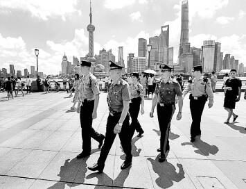 7月18日,中意警员在上海外滩进行联合巡逻。新华社发