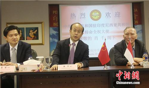 中新社雅加达8月23日电 (记者 林永传)中国驻印尼大使肖千23日下午在雅加达走访了印尼中华总商会,与该会华商代表座谈并介绍了当前中印尼关系。