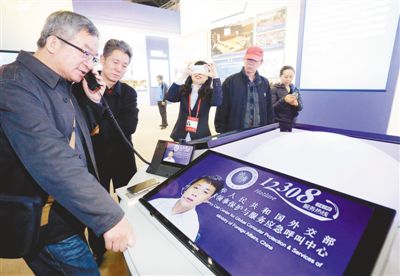 2017年10月27日,市民在北京展览馆体验外交部全球领事保护与服务应急呼叫中心12308热线。人民视觉