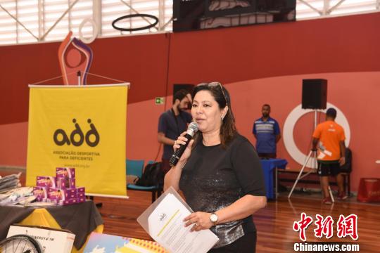 巴西残疾人运动协会主席伊丽埃尼·米亚塔致辞。 莫成雄 摄